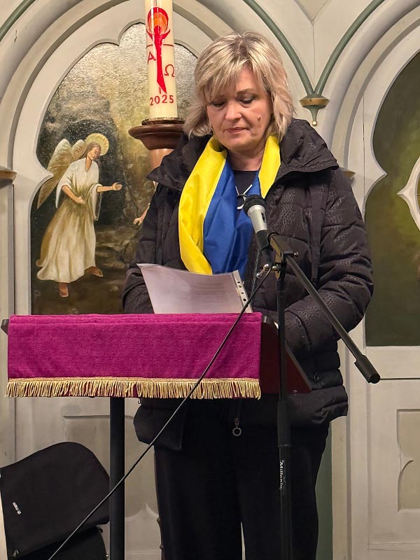Im Anschluss an die Andacht wurde dies unmittelbar erfahrbar: Bei Tee und Gesprächen kamen ukrainische und deutsche Menschen zusammen, die im Landkreis längst zu Nachbarn geworden sind. Gleichzeitig wurde um Spenden zur Unterstützung des Partnerschaftsvereins Solotschiw/ Ukraine in Schöningen gebeten. Die Besucherinnen und Besucher folgten diesem Aufruf großzügig.
