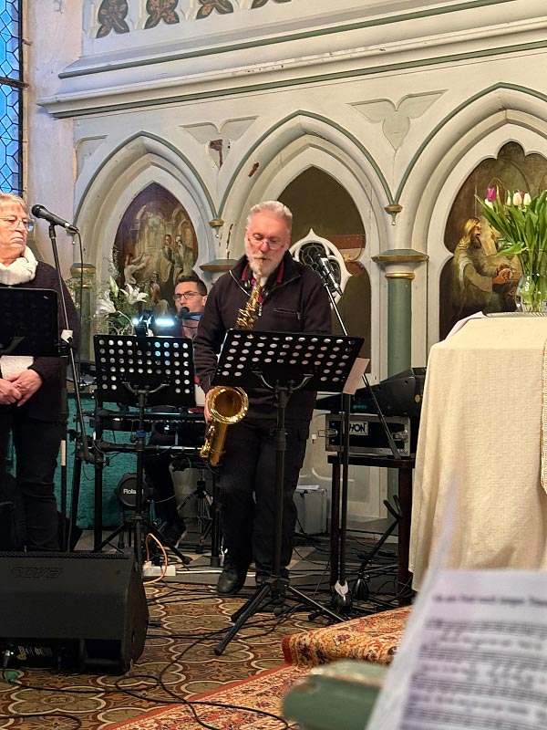 Mit diesen bewegenden Worten aus einem Dankesbrief einer Ukrainerin an ihre deutsche Helferin und inzwischen Freundin wurde in der Predigt ein starkes Zeichen gesetzt. Auch die Lieder der Band Praisentation griffen diese Botschaft musikalisch auf.